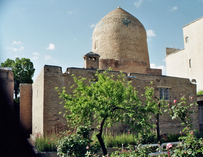 Neben dem Schulhof einer Mädchenschule liegt der Gonbad-e Alavian. Beim Gebäude handelt es sich um einen Grabturm aus dem 12. Jh.