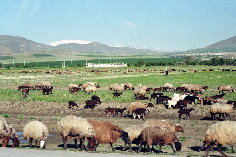 In der Gegend von Hamadan ist alles grün. Am Wegrand sehen wir Nomaden mit Schafherden, Eseln und Hunden.