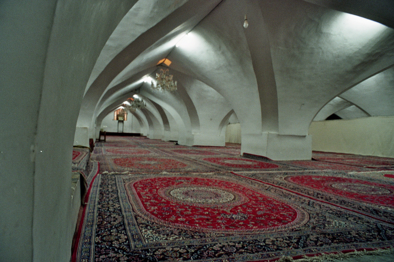 In der Übergangszeit kann im Innenhof der Platz für die Betenden mit herabhängenden Tüchern gegen die Kälte geschützt werden. Im Winter dient ein geschlossener Raum im Inneren des Gebäudes zum Beten. Das Licht gelangt durch Alabasterfenster in der Decke in den Raum.