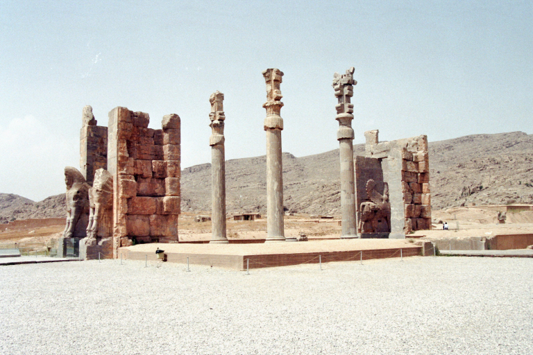 Persepolis wurde um 520 v. Chr. von Darius I. gegründet. Auf einem Areal von 400 x 300 m wurden Palastanlagen erstellt. Diese wurden hauptsächlich für grosse Empfänge und Feste benutzt. 332 v. Chr. wurde es von Truppen Alexanders des Grossen besetzt und ging bei einer Feier der siegreichen griechischen Truppen in Flammen auf. Ob absichtlich oder unabsichtlich ist nicht klar. Jedenfalls wurde es nicht wieder aufgebaut, sondern zerfiel. Darüber lagerte sich Schutt ab. Die ersten systematischen Ausgrabungen erfolgten 1931 -1939 durch deutsche Archäologen.