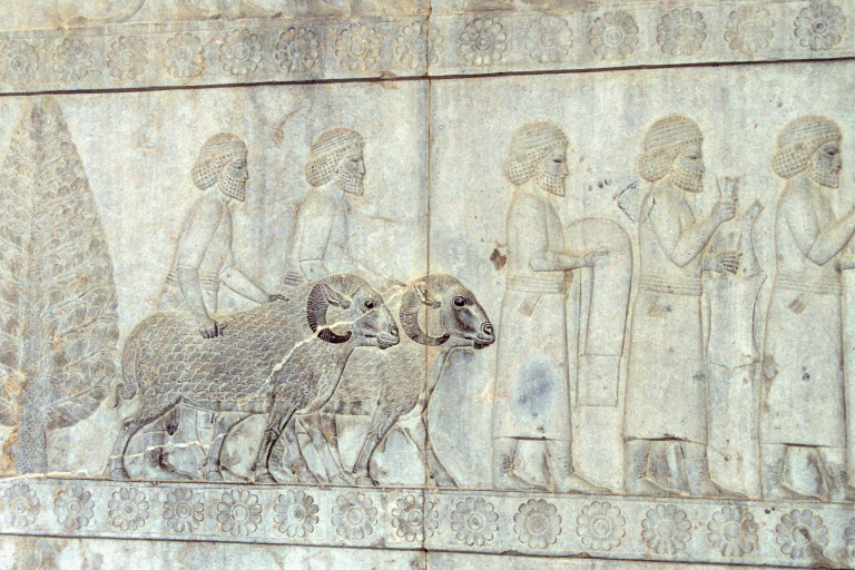Die Reliefs zeigen u.a. Repräsentanten verschiedener Völker, die dem König Geschenke bringen. Sie unterscheiden sich durch ihre Tracht und ihre Gaben.