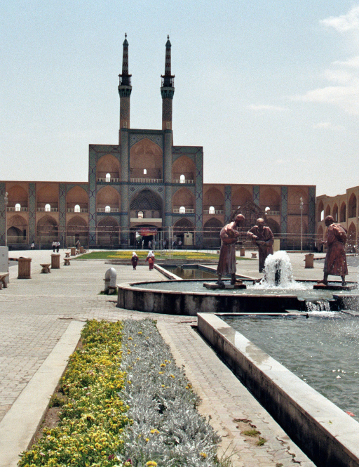 Das Wahrzeichen von Yazd ist die Freitagsmoschee mit ihrem Doppelminarett.